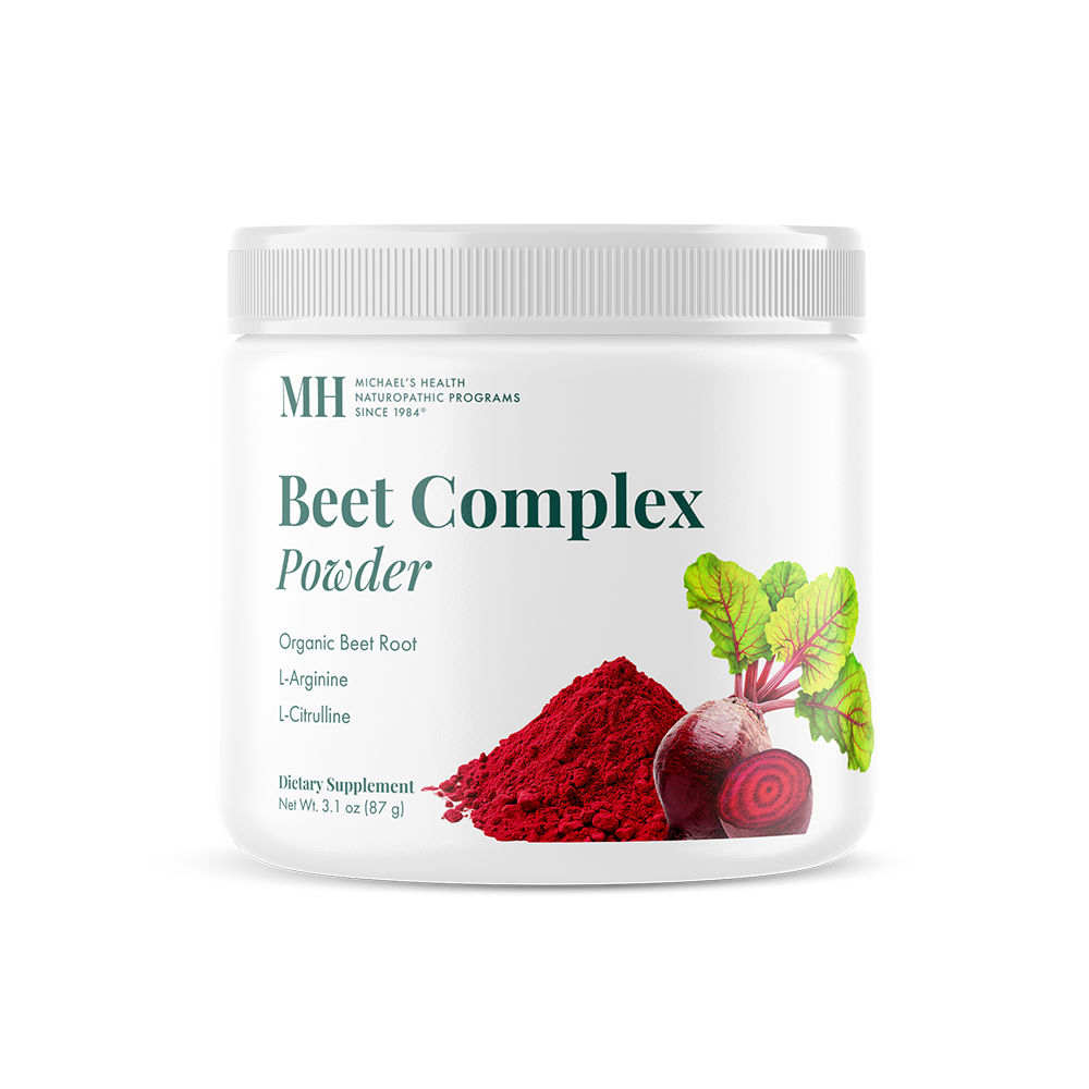 Beet Complex is formulated to support cardiovascular health by emphasizing the natural benefits of beets. Beets contain anti-inflammatory betalains, fiber, and antioxidants that help support healthy cholesterol levels (LDL) and overall cardiovascular function.*